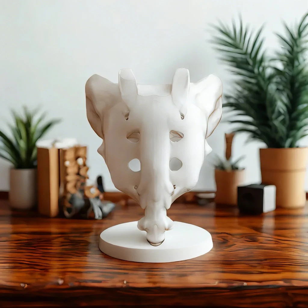 La pieza incluye todos los detalles esenciales, como las crestas, los agujeros sacros y la estructura ósea general, permitiendo una exploración táctil y visual del hueso. Este modelo también es útil para explicar a pacientes o estudiantes la estructura del sacro y su función en el cuerpo humano.
